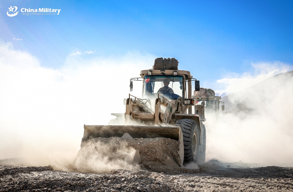 A soldier assigned to a regiment under the Chinese PLA Xinjiang Military Command operates a bulldozer to repair roads during a barrier-breaching training exercise on September 17, 2025. (eng.chinamil.com.cn/Photo by Wu Weiheng)9月17日,新疆軍區(qū)某團開展協(xié)同破障訓練。圖為工程機械修復道路。(英文中國軍網(wǎng)/吳煒恒 攝)
