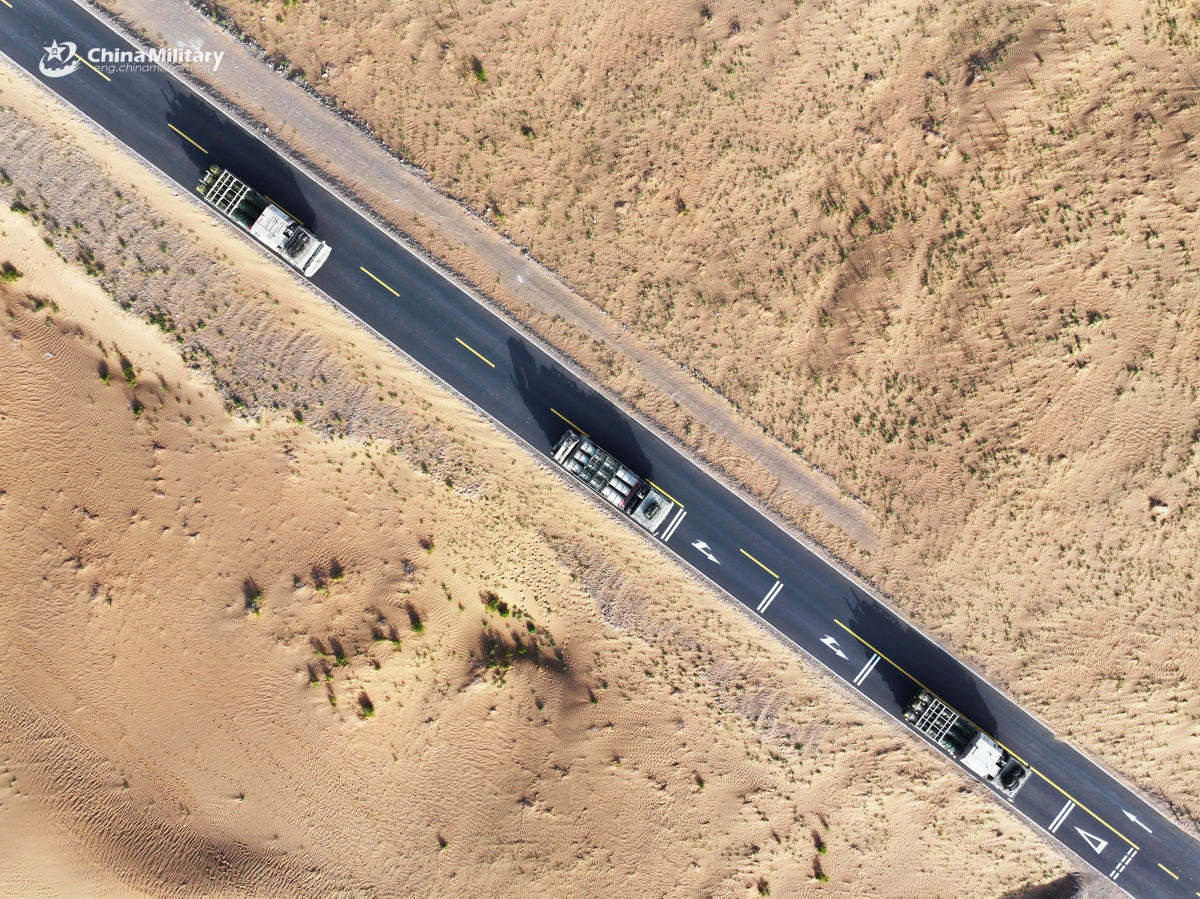 9月17日,第76集團(tuán)軍某旅在西北某陌生地域開(kāi)展跨晝夜實(shí)彈射擊演練。圖為部隊(duì)車(chē)輛向目標(biāo)地域機(jī)動(dòng)。(英文中國(guó)軍網(wǎng)/石濤 攝)