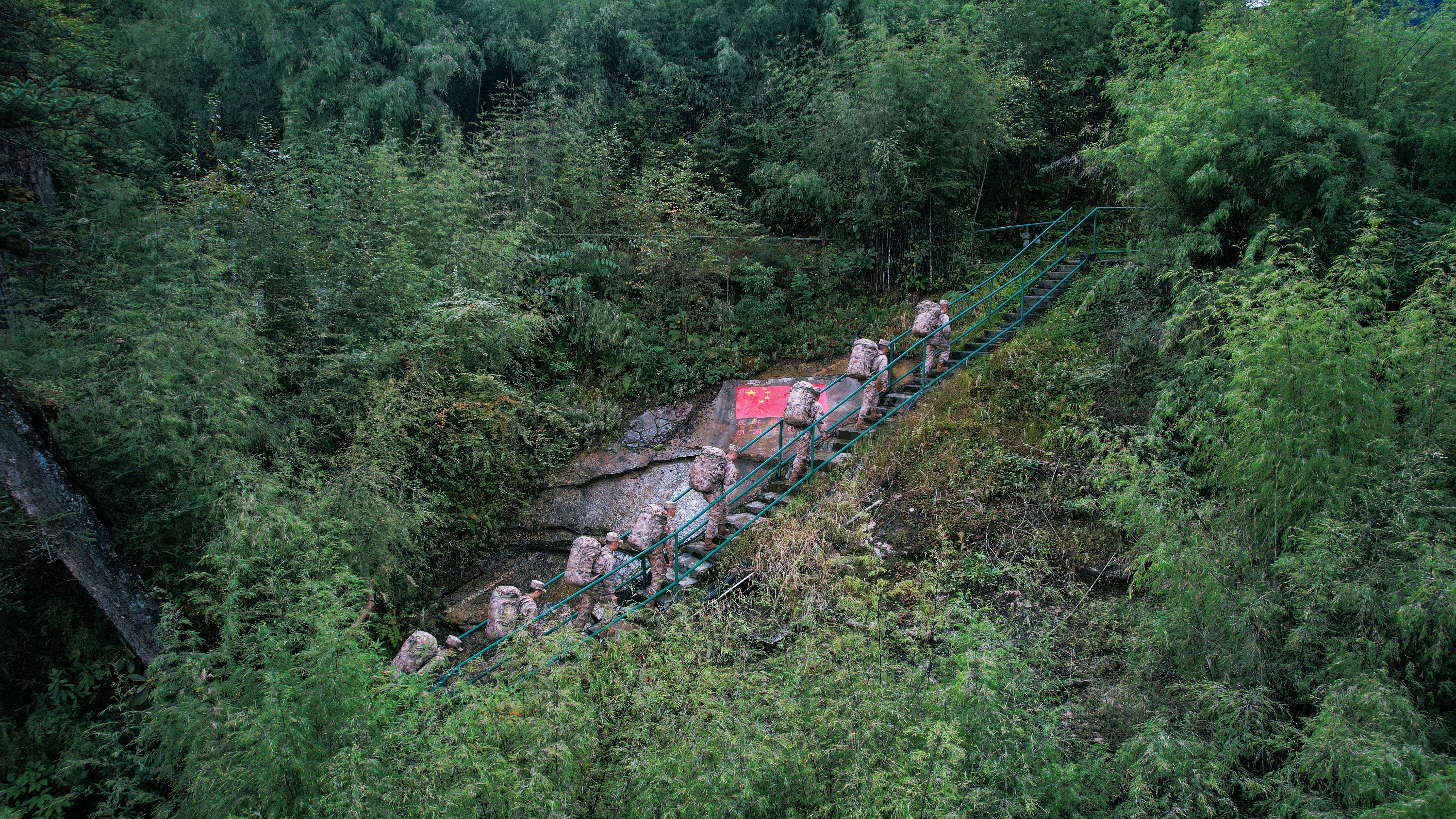 連隊(duì)組織下連新兵攀登“天梯”,前往 3197 哨所。
