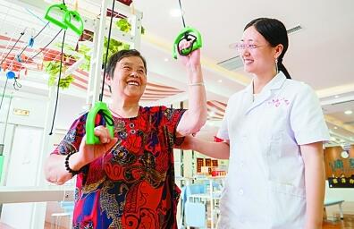 河北省武邑縣“醫(yī)養(yǎng)結(jié)合”打造康復(fù)養(yǎng)老新模式。圖為該縣醫(yī)院醫(yī)養(yǎng)中心康復(fù)師指導(dǎo)老人康復(fù)訓(xùn)練。新華社發(fā)