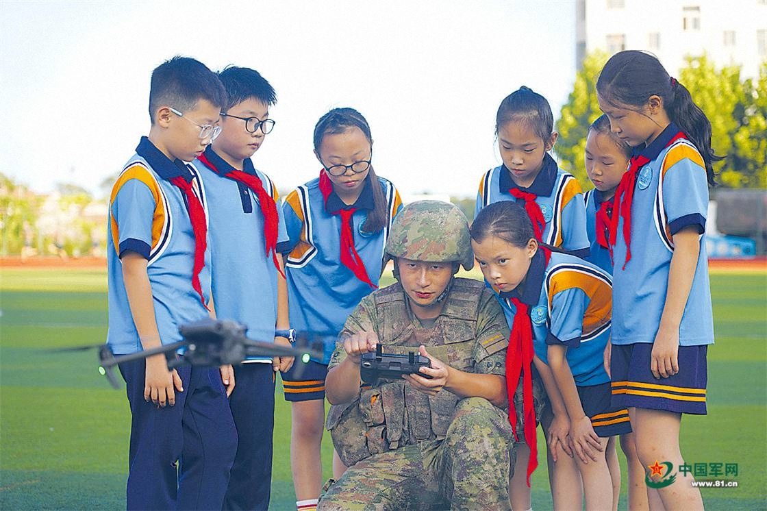 開學(xué)前夕,第80集團(tuán)軍某旅官兵走進(jìn)駐地小學(xué)開展國防教育。