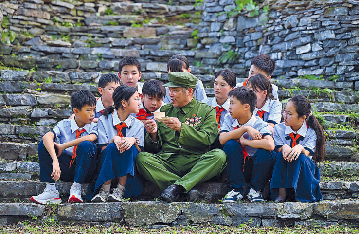 近日,安徽省含山縣人武部邀請(qǐng)參戰(zhàn)老兵為學(xué)生講述戰(zhàn)斗故事。徐偉 攝