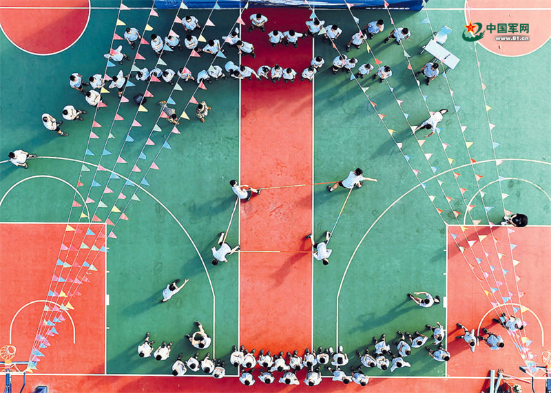 學生和該校官兵一起參與趣味團隊訓練活動。龍嘉樂 攝