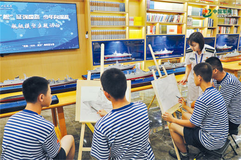 學生進行艦艇模型繪畫創(chuàng)作。鄭洪勝 攝