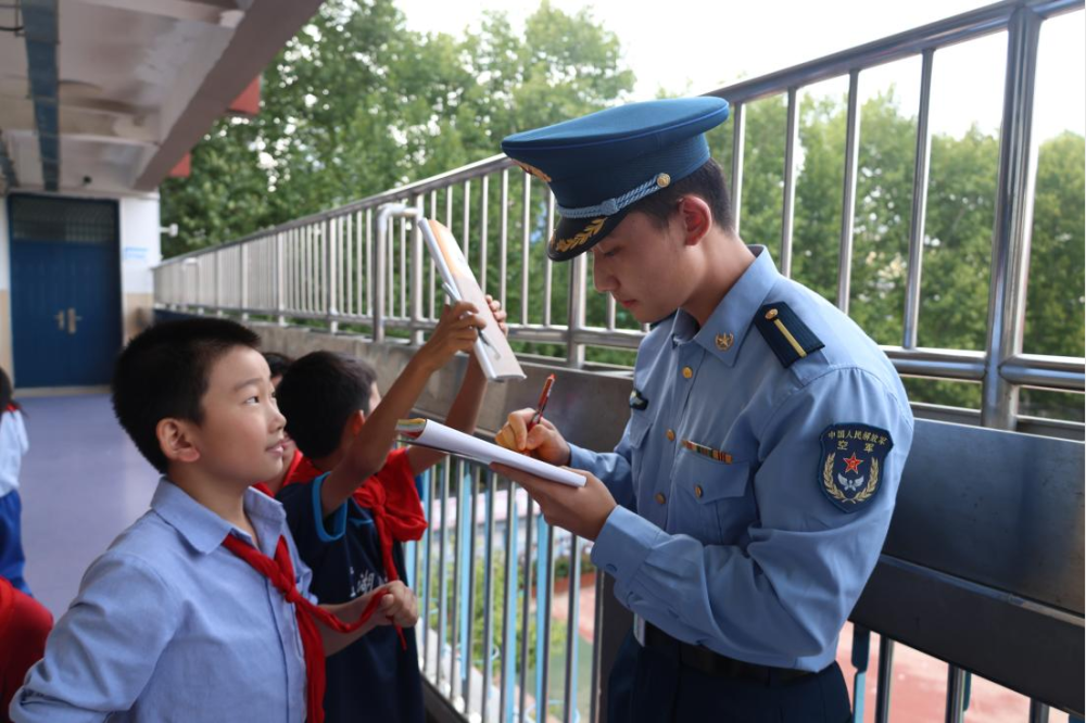 空軍工程大學(xué)某學(xué)院的宣講學(xué)員走進(jìn)駐地小學(xué),為學(xué)生們帶來(lái)了一場(chǎng)主題為“銘記歷史 吾輩當(dāng)自強(qiáng)”的國(guó)防教育課,讓愛(ài)國(guó)強(qiáng)軍的種子在孩子們心中生根發(fā)芽。(朱秉璽、傅紫琦、陳晟)
