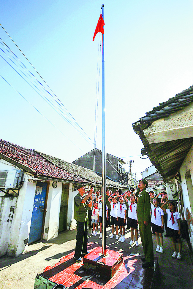 從那天起,無論刮風下雨,清晨升旗、傍晚降旗,雷打不動?!懊磕陣鴳c,全家人都要趕回家參加升旗儀式。鄉(xiāng)親們也會過來,人最多的時候,能從小院排到巷口?!狈杜嫦日f。