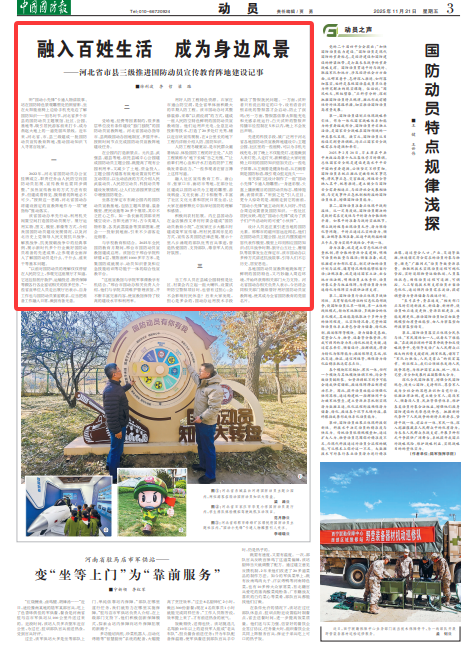 融入社區(qū)宣傳教育工作。唐山市、張家口市、廊坊市等地,在部分社區(qū)建成以國防動員為主題的雕塑、游戲轉(zhuǎn)盤、文化長廊、打卡相框等,豐富了社區(qū)文化元素和居民日常生活,讓大家在潛移默化中加深對國防的理解和感情。