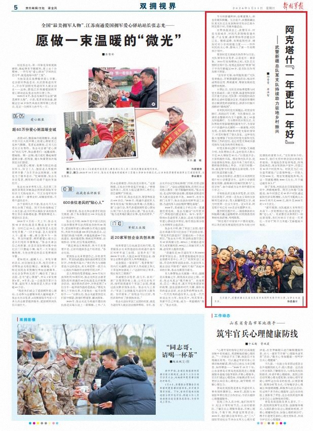 從那以后,支隊(duì)官兵每季度都與村黨支部成員一同上黨課,每逢黨和國(guó)家召開(kāi)重大會(huì)議,支隊(duì)第一時(shí)間組織政治教員走進(jìn)村黨建會(huì)議室,用通俗易懂的語(yǔ)言解讀黨的創(chuàng)新理論,講清鄉(xiāng)村振興戰(zhàn)略的“路線圖”。