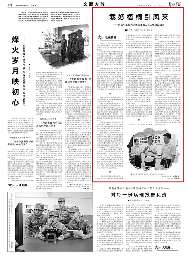 據(jù)了解,文職人員幫帶計劃實施后,學(xué)校為不同階段的文職人員量身打造成長計劃,每年約有80人次參加軍地輪訓(xùn)、50人次赴部隊跟訓(xùn),能力素質(zhì)得到有效提升,已有數(shù)百名文職人員通過淬火歷練成長為教學(xué)科研骨干。