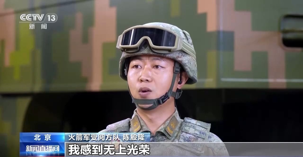 火箭軍受閱方隊(duì) 陳殷?。哼@次能夠圓滿完成受閱任務(wù),我感到無上光榮,我將接過班長(zhǎng)手中的“接力棒”,展現(xiàn)出新時(shí)代火箭兵敢為人先、奮進(jìn)一流的昂揚(yáng)風(fēng)貌。
