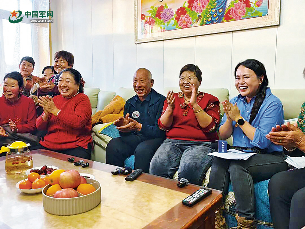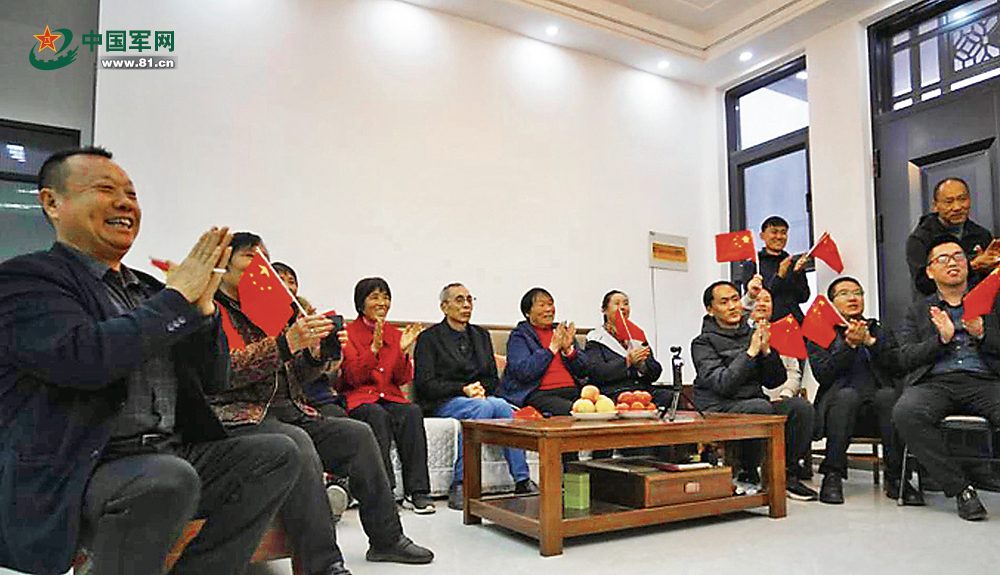 陳冬家人和軍地慰問組共同觀看神舟二十號航天員乘組返回直播。王 許攝