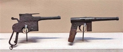 早在土地革命戰(zhàn)爭時期,根據(jù)地小型兵工廠甚至個人都能自制這種手槍。比如,鄂豫皖軍委兵工廠鼎盛時,可日產(chǎn)“獨撅子”4支,幾年累計生產(chǎn)該槍3500余支,成為紅軍與國民黨軍作戰(zhàn)的重要武器。中國人民革命軍事博物館就陳列多件此類武器。
