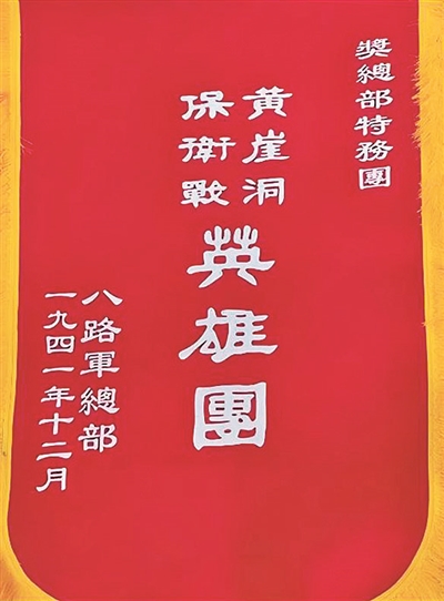 “黃崖洞保衛(wèi)戰(zhàn)英雄團”戰(zhàn)旗。