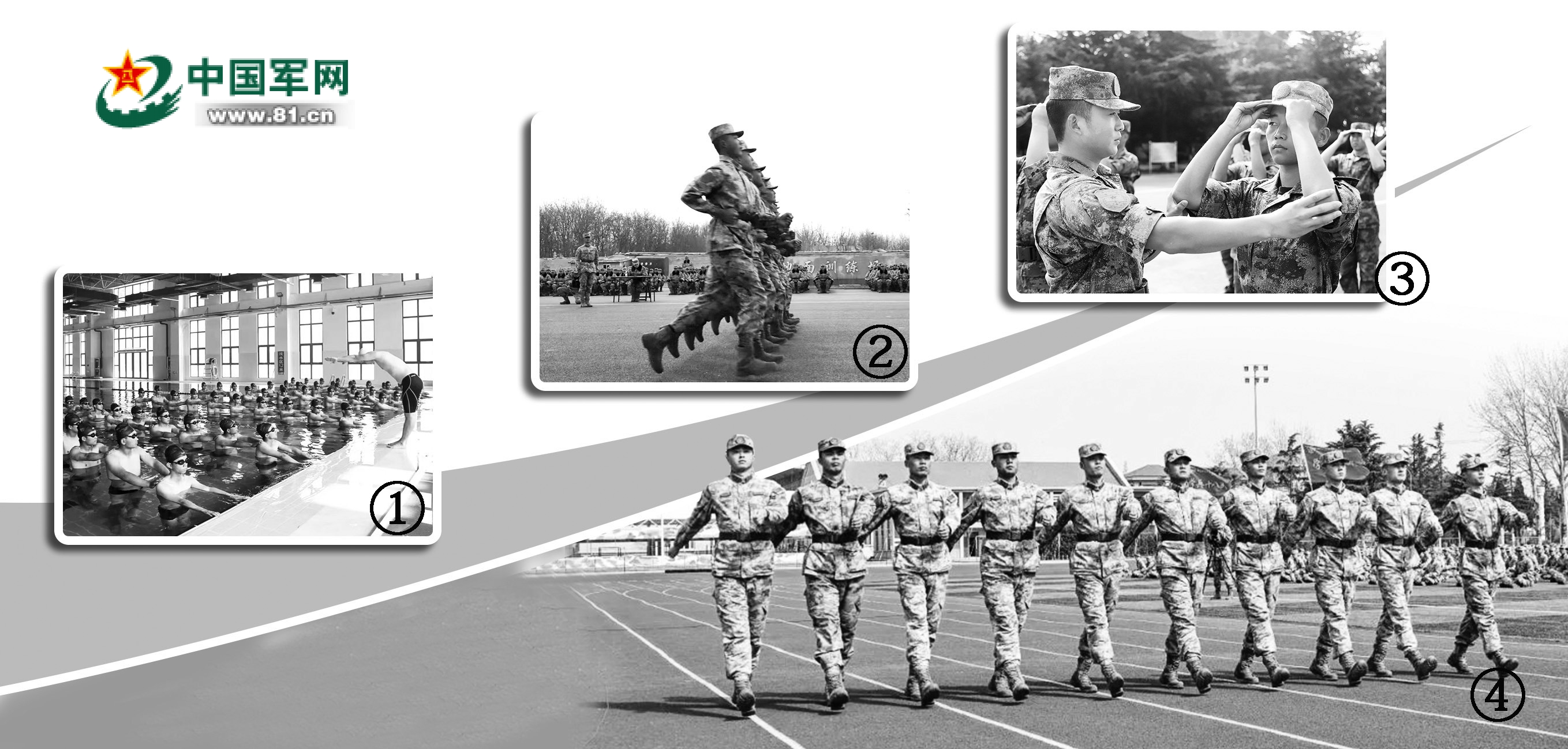 圖④:新兵進(jìn)行隊(duì)列訓(xùn)練。