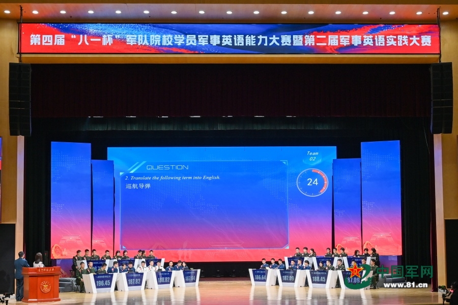 近日,第四屆“八一杯”軍隊(duì)院校學(xué)員軍事英語能力大賽暨第二屆軍事英語實(shí)踐大賽決賽在國防科技大學(xué)圓滿收官,來自國防大學(xué)、陸軍工程大學(xué)、海軍工程大學(xué)、空軍工程大學(xué)、武警工程大學(xué)、陸軍軍醫(yī)大學(xué)等軍隊(duì)院校的14支代表隊(duì)參加了此次大賽。