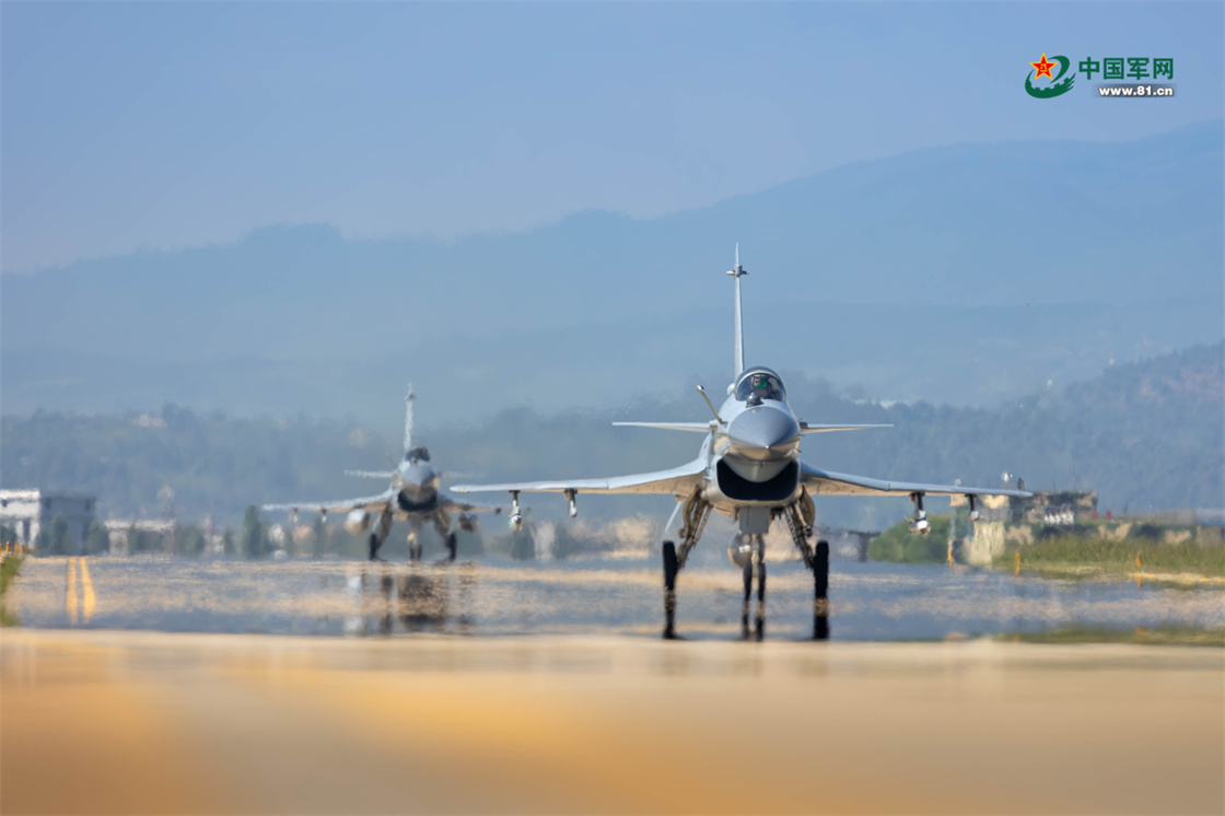戰(zhàn)機(jī)陸續(xù)滑回。藍(lán)善湖 攝