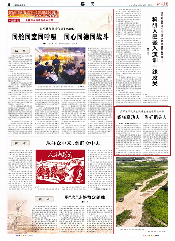 “軍代表是軍隊裝備質量的‘監(jiān)造官’,必須自覺用戰(zhàn)斗力標準牽引和檢驗各項工作?!痹撥姶翌I導介紹,近年來,面對裝備監(jiān)管任務日益繁重的實際,他們緊盯裝備質量監(jiān)督這個核心職能,圍繞監(jiān)管機制、人才培養(yǎng)、任務練兵等重點環(huán)節(jié)綜合發(fā)力,全面提升裝備質量管理水平。