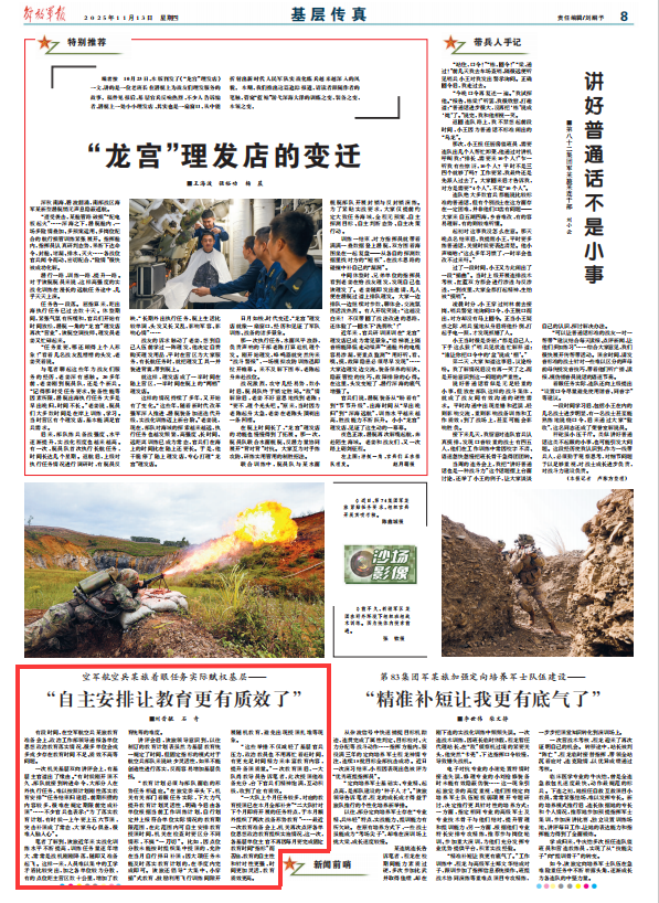 講評(píng)會(huì)后,該旅領(lǐng)導(dǎo)意識(shí)到,以往制訂的教育計(jì)劃表雖然為基層教育統(tǒng)一規(guī)定了時(shí)間,但固定指標(biāo)的模式對(duì)于航空兵部隊(duì)來說缺少靈活性,如果不能創(chuàng)造性進(jìn)行落實(shí),反而容易增加基層負(fù)擔(dān)。