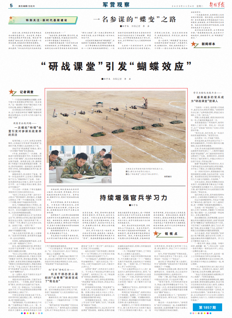 在北部戰(zhàn)區(qū)空軍某部機(jī)關(guān)干部們看來,這只美麗而神奇的“蝴蝶”翅膀每周都會(huì)如期扇動(dòng),它在軍人們的頭腦中也刮起“風(fēng)暴”。