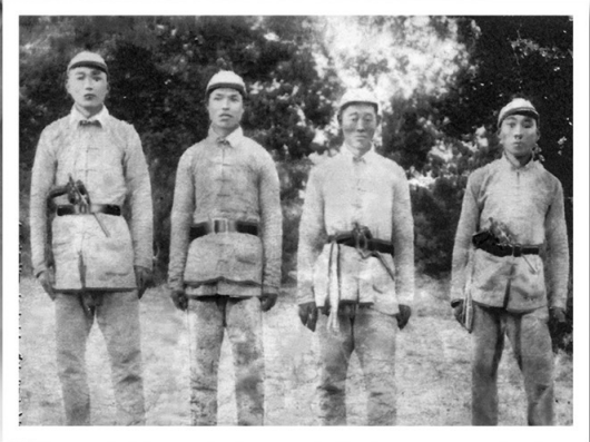 1943年6月,李登月(右二)與戰(zhàn)友偵察歸來留影。