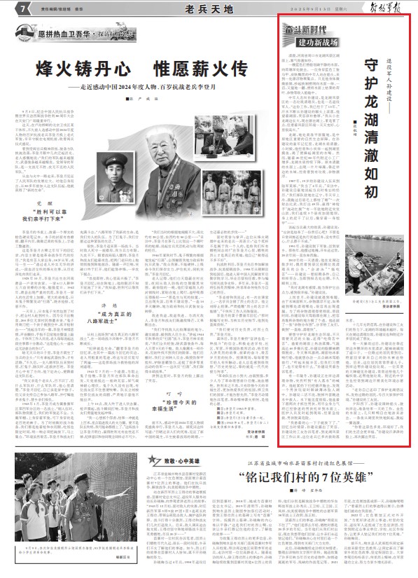 “我懸著的心一下子就放下了?!被貞洰敃r情景,孫建設(shè)露出了笑容。孫建設(shè)的工友告訴筆者,到龍湖風(fēng)景區(qū)工作以來,這位老兵已多次救助落水者。