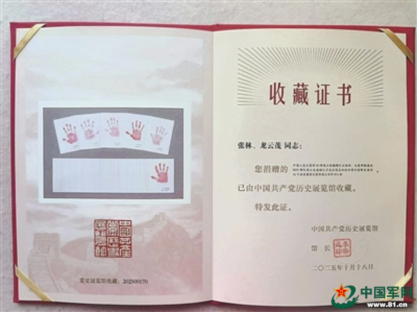 中國共產(chǎn)黨歷史展覽館收藏證書。張 林提供