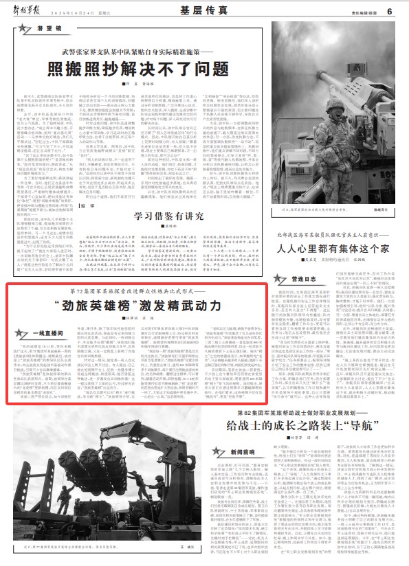 “勁旅英雄榜”是該旅探索的群眾性練兵比武新形式。前期,旅領導在基層蹲點調研時發(fā)現,不少單位樓前櫥窗內的“龍虎榜”更新較慢,而且長時間位居榜首的基本都是“老面孔”。