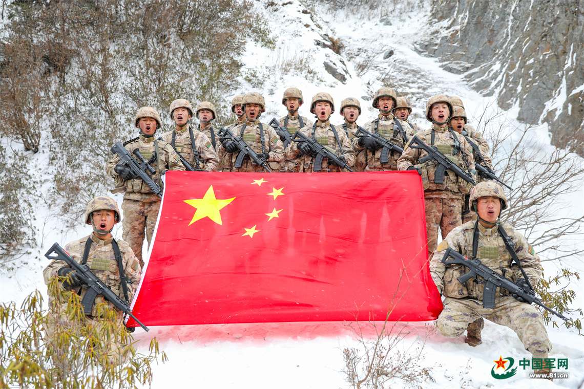 △次羅布與戰(zhàn)友們到達巡邏點位后展旗宣誓。