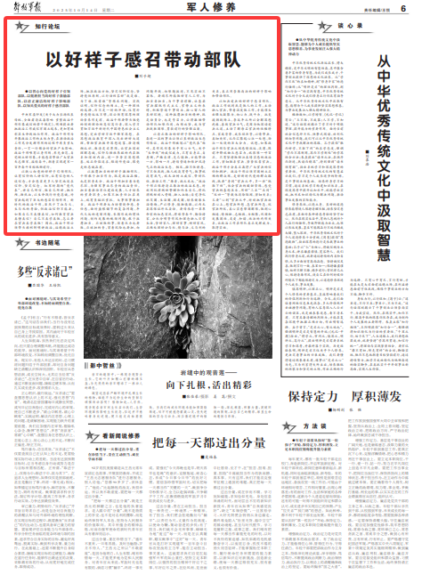 ●以鐵心向黨的好樣子引領部隊,以挺膺擔當的好樣子激勵部隊,以清正廉潔的好樣子影響部隊,以知兵愛兵的好樣子感召部隊