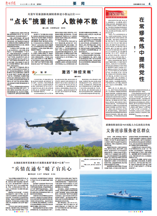 黨性是黨員干部立身、立業(yè)、立言、立德的基石。習主席強調,領導干部要把錘煉黨性、提高思想覺悟作為終身課題,活到老、學到老、修養(yǎng)到老。軍隊黨員干部應把加強黨性修養(yǎng)作為政治整訓的重要內容,加強思想改造、政治鍛造和作風塑造,煉就“金剛不壞之身”。