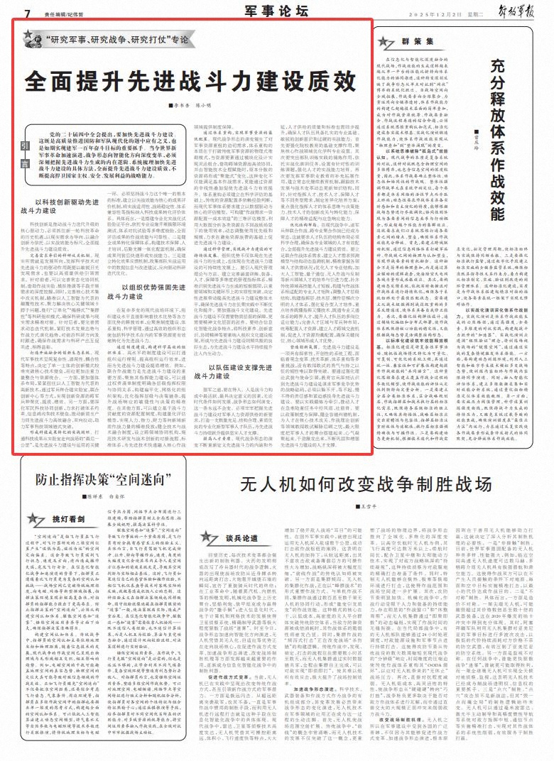 軍事論壇丨全面提升先進(jìn)戰(zhàn)斗力建設(shè)質(zhì)效