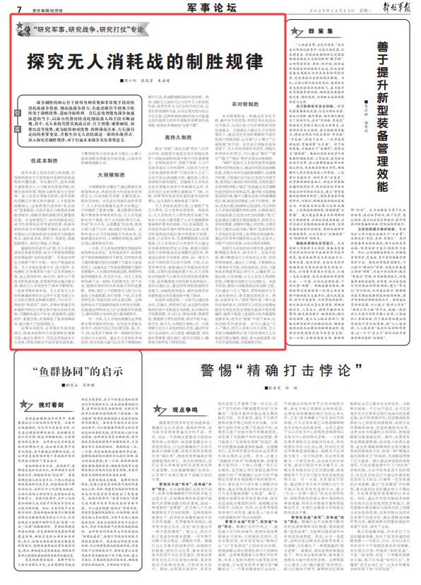 運籌未來戰(zhàn)爭,必須強(qiáng)化作戰(zhàn)效益理念,把成本控制作為克敵制勝的重要手段,通過合理設(shè)計、靈活運用低成本無人系統(tǒng),持續(xù)消耗對手高價值作戰(zhàn)資源,不斷降低我方攻防成本交換比,以最小戰(zhàn)場消耗發(fā)揮最佳作戰(zhàn)效能,以成本優(yōu)勢贏得戰(zhàn)略主動。