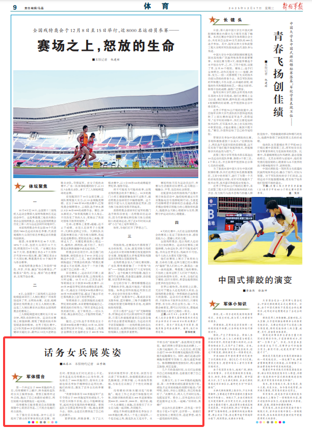 在這次比武競賽中,話務(wù)連一舉奪得女子組4個冠軍、總評第一。姑娘們在競技場上展現(xiàn)自我、追逐夢想,成為一道亮麗的風(fēng)景線。
