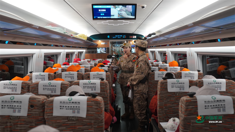 “列車正在通過的這片區(qū)域,就是當年楊靖宇將軍率領將士戰(zhàn)斗過的地方,你們走過的每一寸鐵軌,都浸染著抗聯(lián)將士們的熱血……”在前往沈陽的高鐵上,通化軍分區(qū)的民兵紅色講解員為學生講述抗聯(lián)故事,組織學唱抗聯(lián)歌曲。