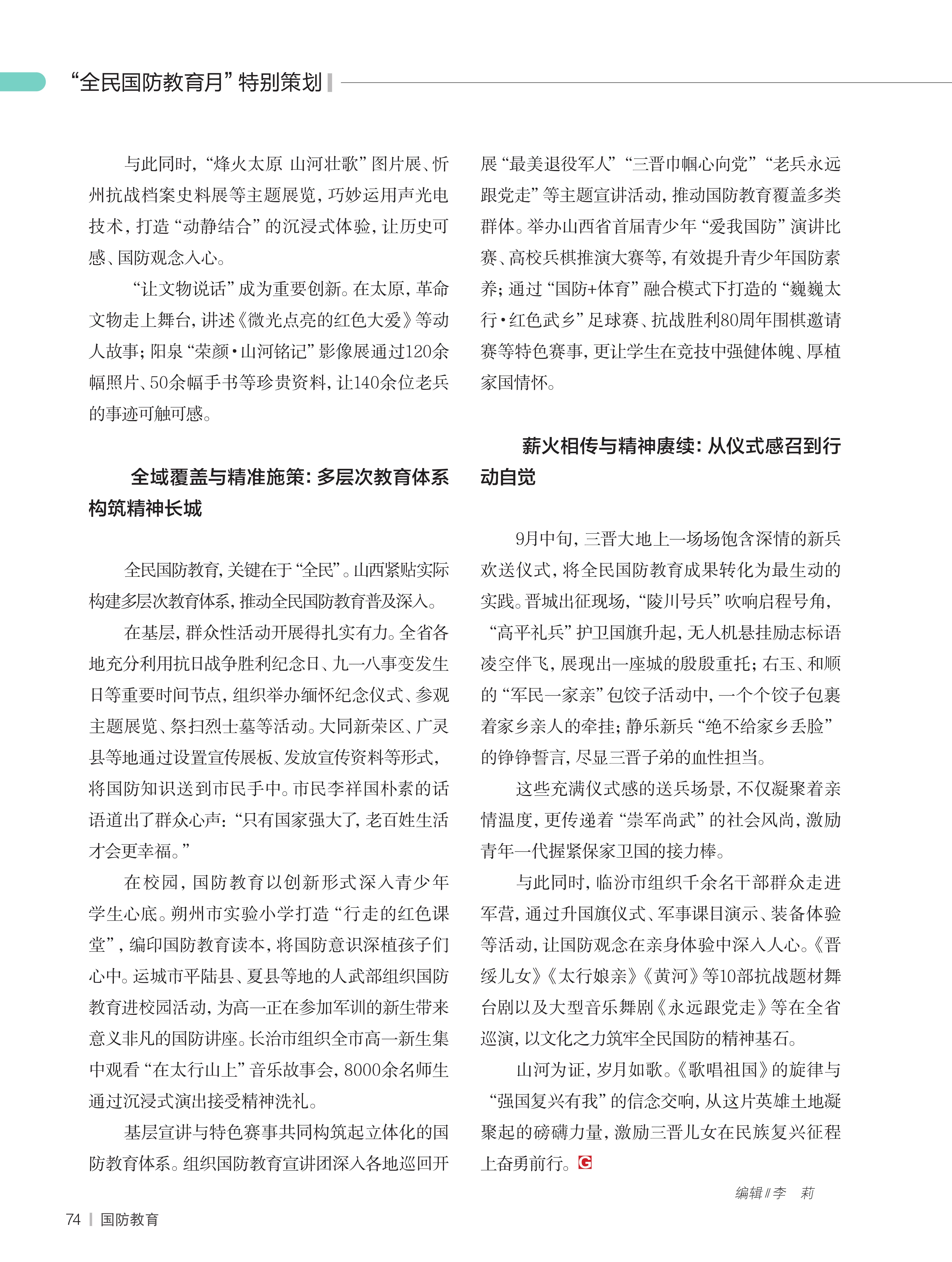 作者:中共山西省委宣傳部宣傳教育處(全民國(guó)防教育處) 本刊記者 李 莉