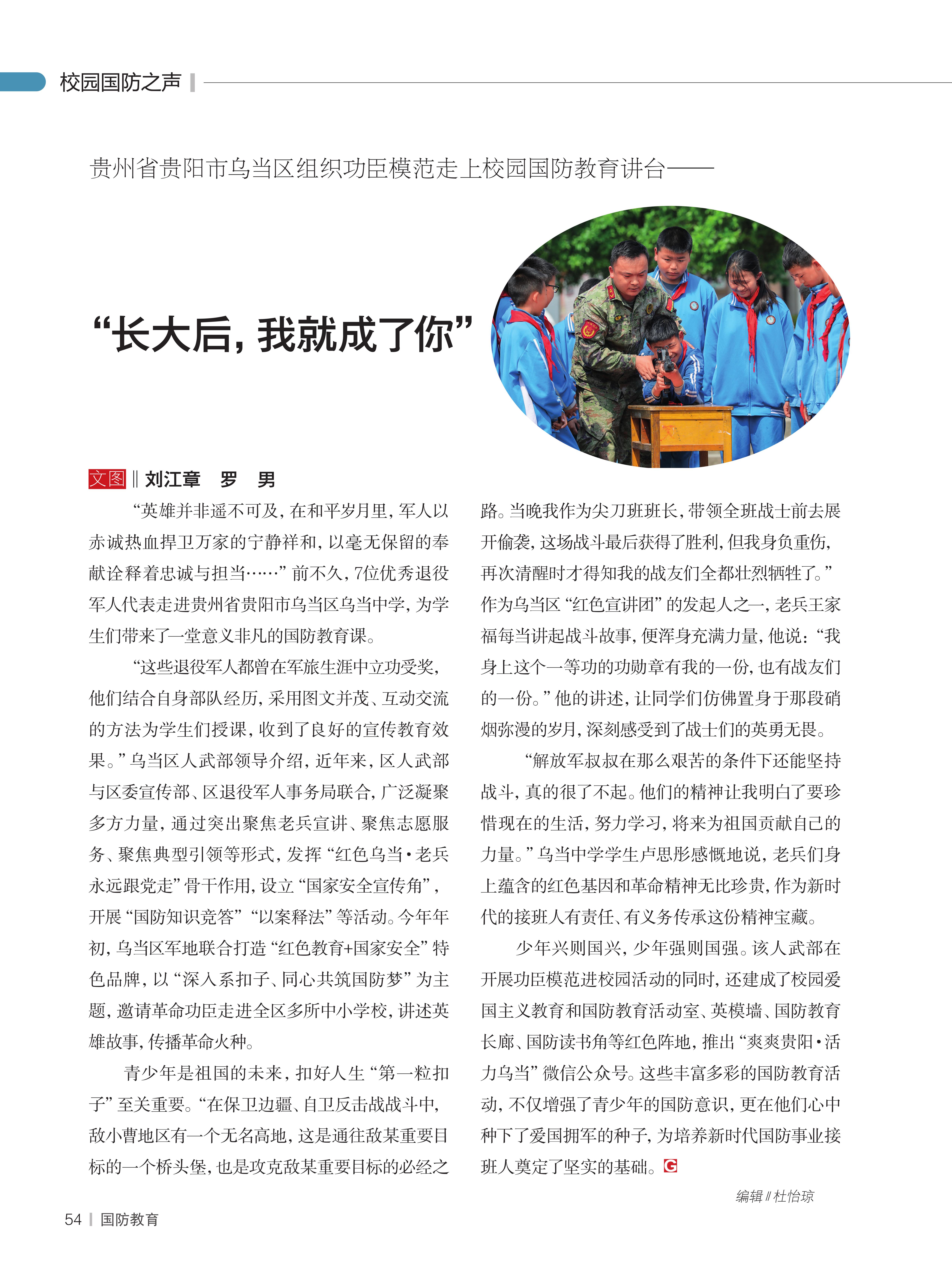 貴州省貴陽市烏當(dāng)區(qū)組織功臣模范走上校園國防教育講臺——