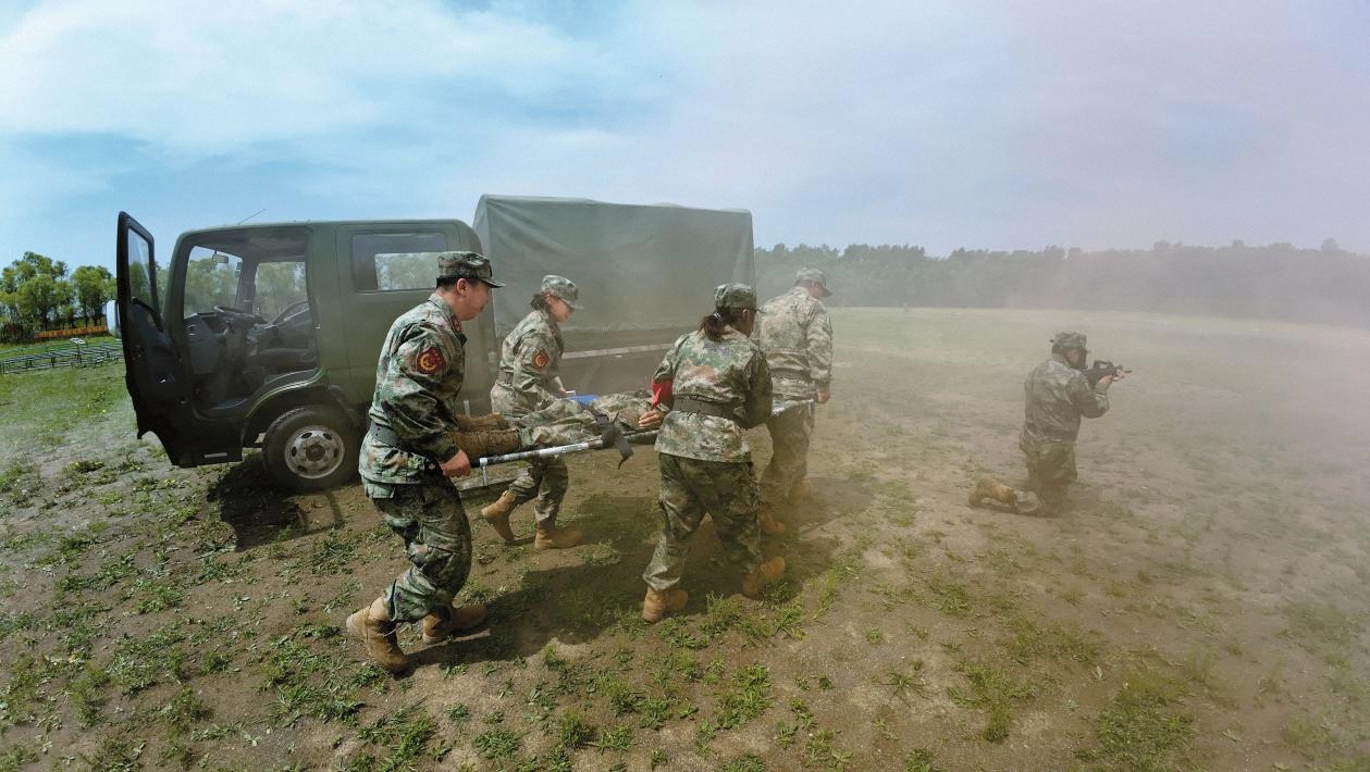 長春警備區(qū)組織民兵分隊進行戰(zhàn)地醫(yī)療救護訓(xùn)練。