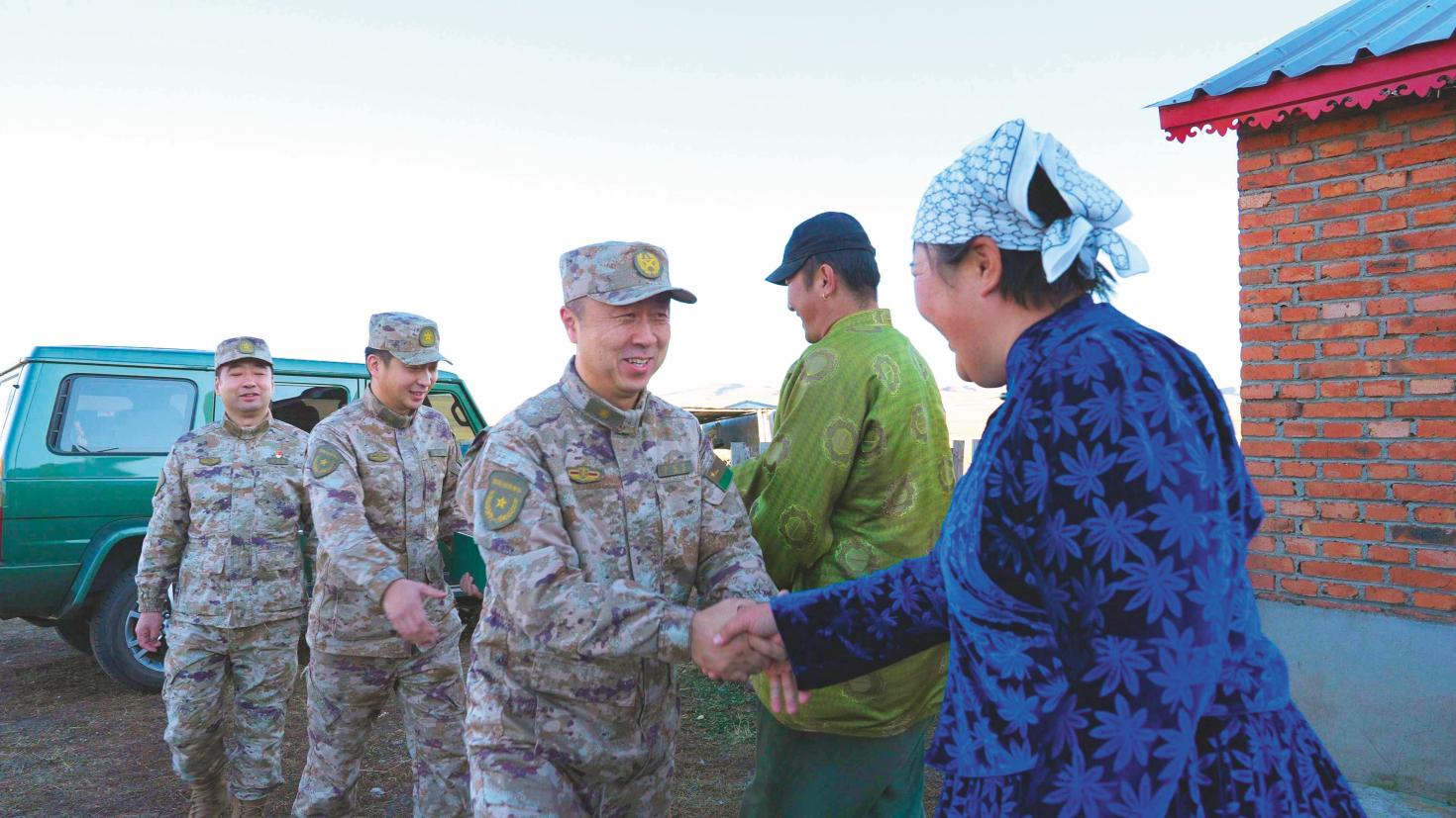 李鳳飛與呼倫貝爾軍分區(qū)機關人員一起到結(jié)對幫扶戶家中走訪。