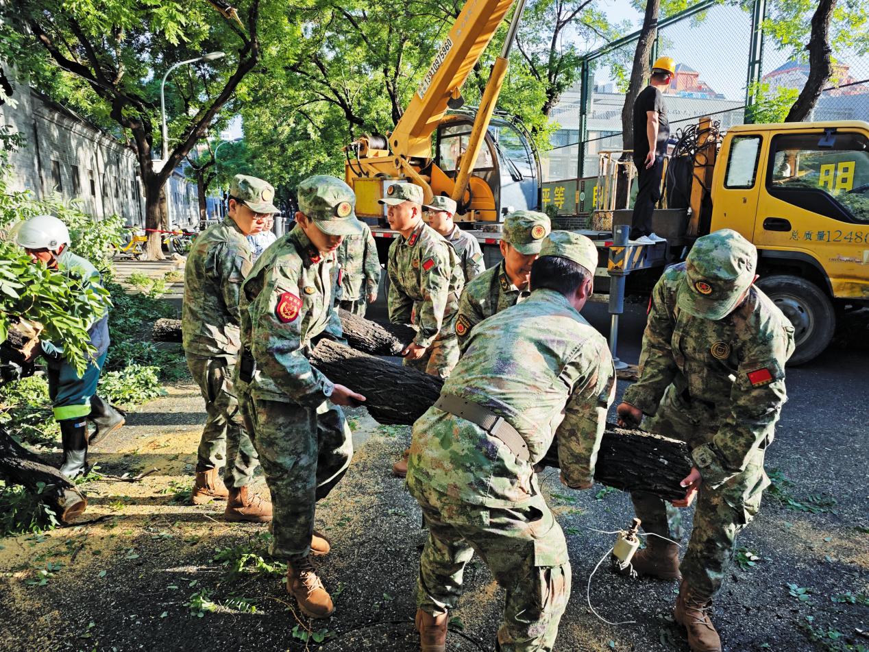 西城區(qū)人武部組織民兵應(yīng)急分隊民兵參與應(yīng)急搶險行動。