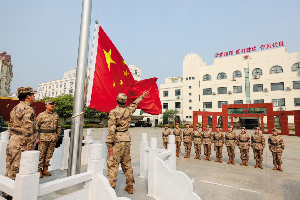 十女民兵班正在舉行升國(guó)旗儀式。(攝影/謝婷婷)