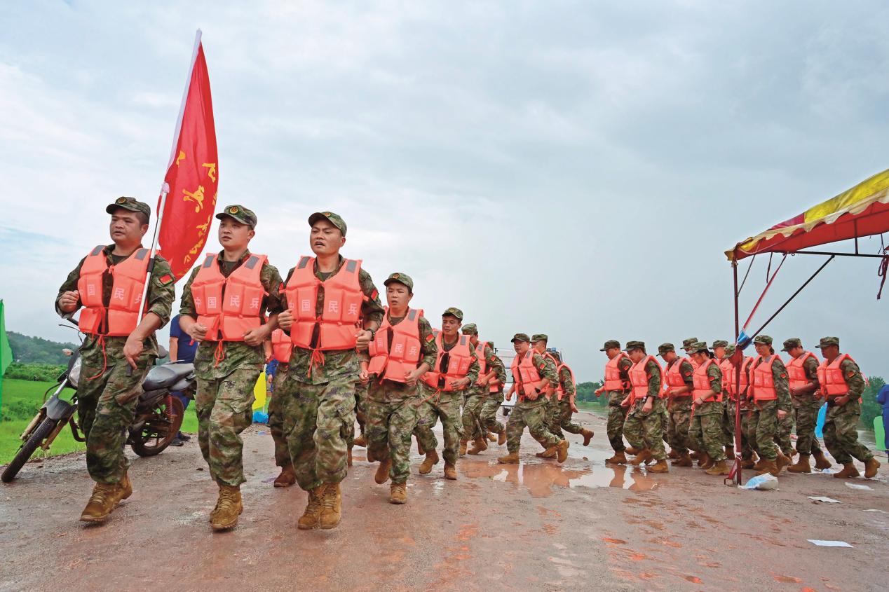 左權(quán)民兵應(yīng)急連參加醴陵市軍地組織的防汛救援綜合演練。