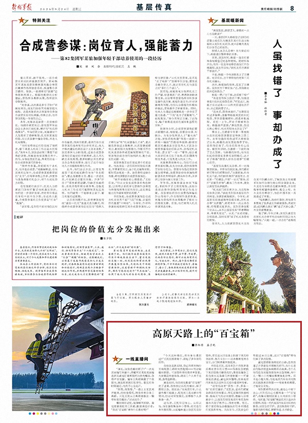 “這背后還有‘多想一步、多備一物’的責任意識?!蓖鮿P說,老兵們把復(fù)雜路段的行車要點、常見故障的快速判斷、極端天氣的應(yīng)對流程,都融入日常教學中,讓戰(zhàn)友們對在高原行車的各種潛在風險了熟于心、預(yù)有對策。而且,箱子里的物品會根據(jù)執(zhí)行任務(wù)不同進行更換和補充。入伍至今,王凱安全行車超過30萬公里,這只“百寶箱”幫他化解了多次險情。