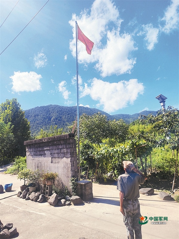 安徽省旌德縣三溪社區(qū)一條蜿蜒山路的盡頭,有一座普普通通的農(nóng)家小院。院子靠山而建,中央有座青石壘就的旗臺,沒有一絲雜草,旗臺中央矗立著一根5米高的旗桿。