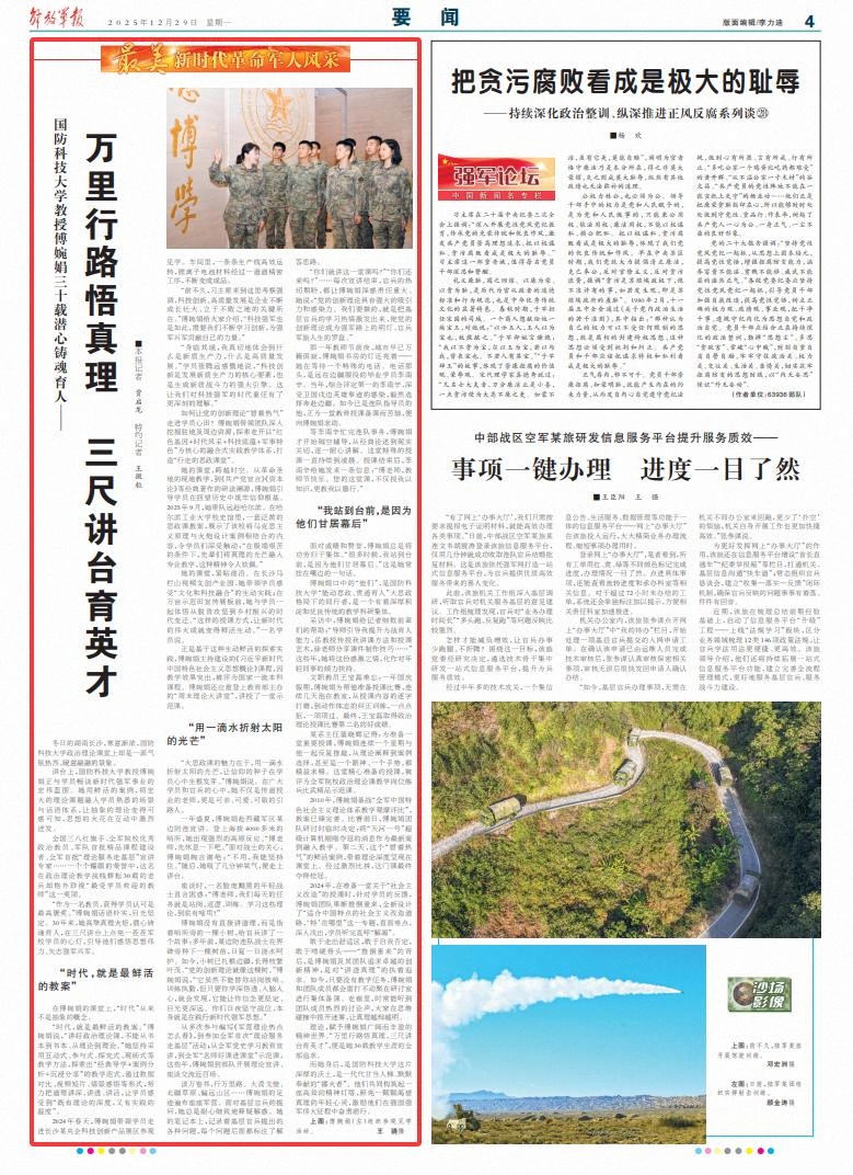 而她身后,是國(guó)防科技大學(xué)這片深厚的沃土,是一代代甘當(dāng)人梯、默默奉獻(xiàn)的“播火者”。他們共同構(gòu)筑起一座高聳的精神燈塔,照亮一顆顆渴望真理的年輕心靈,激勵(lì)他們?cè)趶?qiáng)國(guó)強(qiáng)軍偉大征程中奮勇前行。