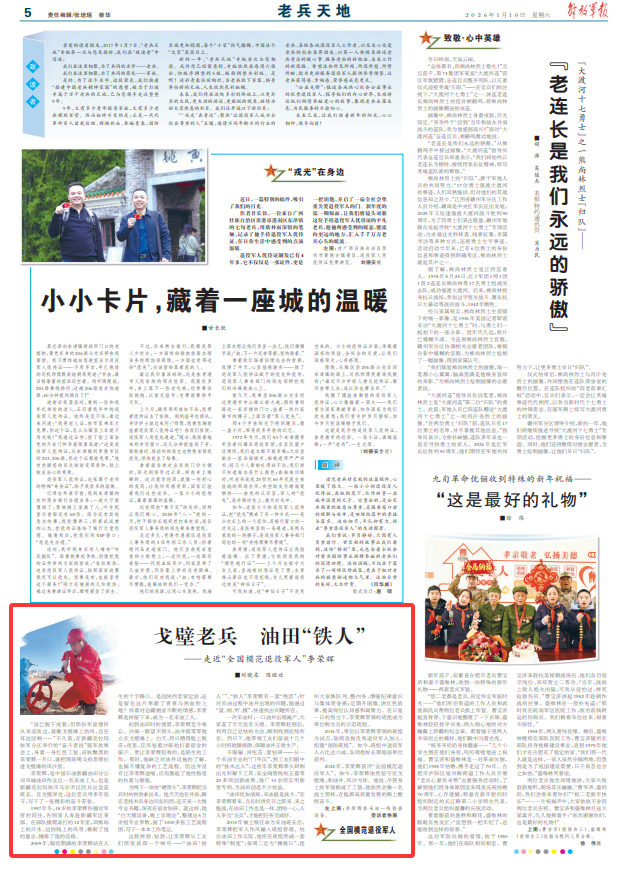 2024年,李榮輝獲評“全國模范退役軍人”。如今,李榮輝依然堅守在戈壁灘,和油井、風沙為伴。他說,盡管身上的軍裝換成了工裝,他依然會像一名戰(zhàn)士那樣,在能源高質量發(fā)展的路上繼續(xù)奮斗。