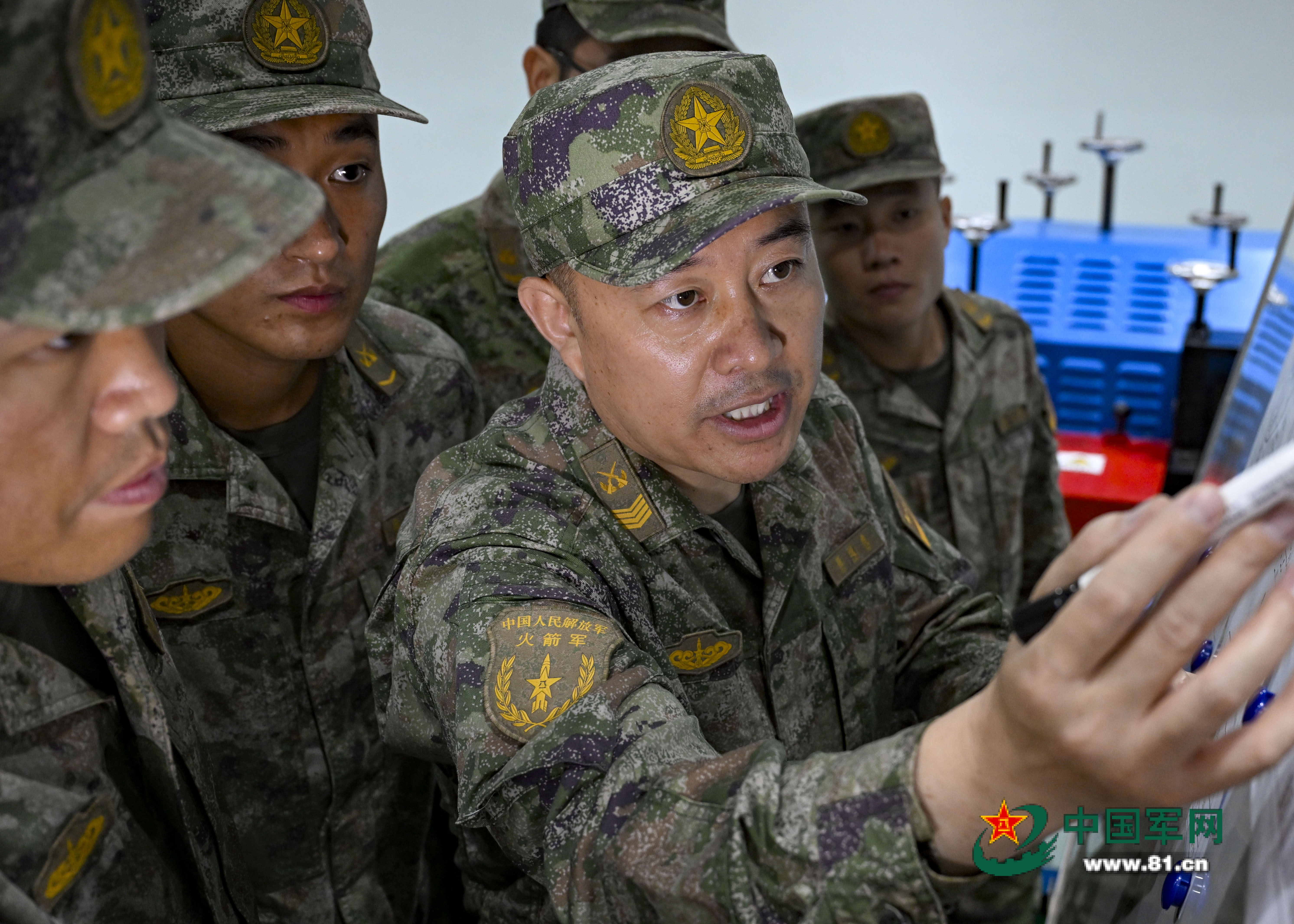 火箭軍某旅一級軍士長崔道虎(中)在與戰(zhàn)友探討設(shè)備改進方案。劉明松攝