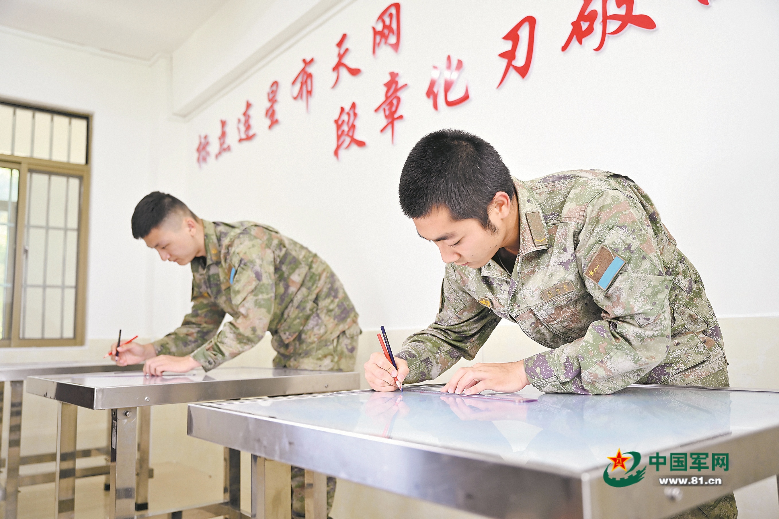 南部戰(zhàn)區(qū)空軍某雷達(dá)站官兵正在進(jìn)行標(biāo)圖訓(xùn)練。