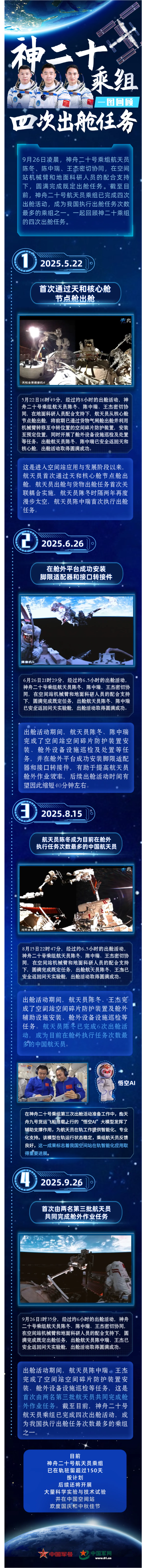 一圖回顧神二十乘組四次出艙任務(wù)!