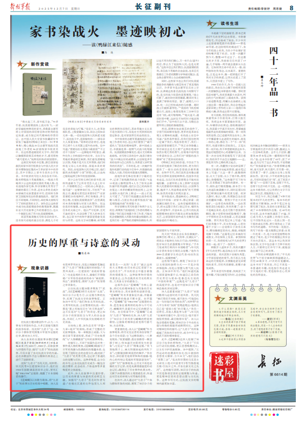 這些細節(jié)描寫,展現(xiàn)了知識分子以文報國的獨特方式——不是沙場沖鋒陷陣,而是以智慧與勇氣投入抗戰(zhàn)。正如詩中所寫:“他們知道民族與國家意味著什么/知道自己肩負的歷史責(zé)任與使命/是魯迅先生說的‘中國的脊梁’”,這既是對“九君子”的高度評價,也是對中國知識分子精神品格的深刻詮釋。