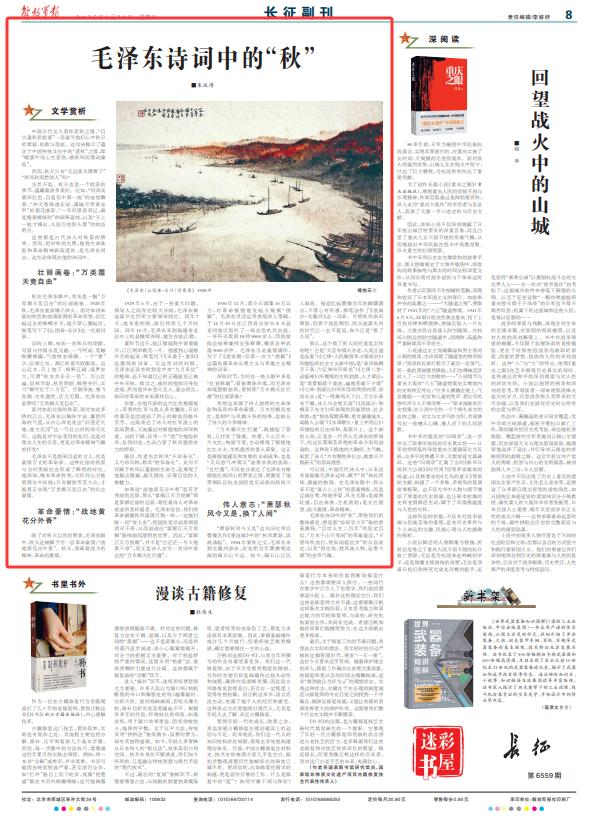 這些都是古代詩人對秋景的贊賞。然而,把對秋的禮贊,推到生命體驗(yàn)和革命精神新高度的,是毛澤東同志。這生動(dòng)體現(xiàn)在他的詩詞中。